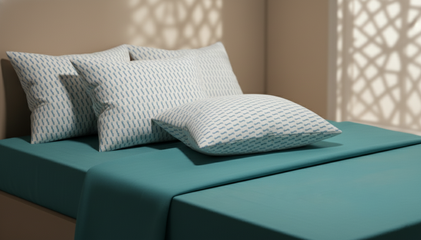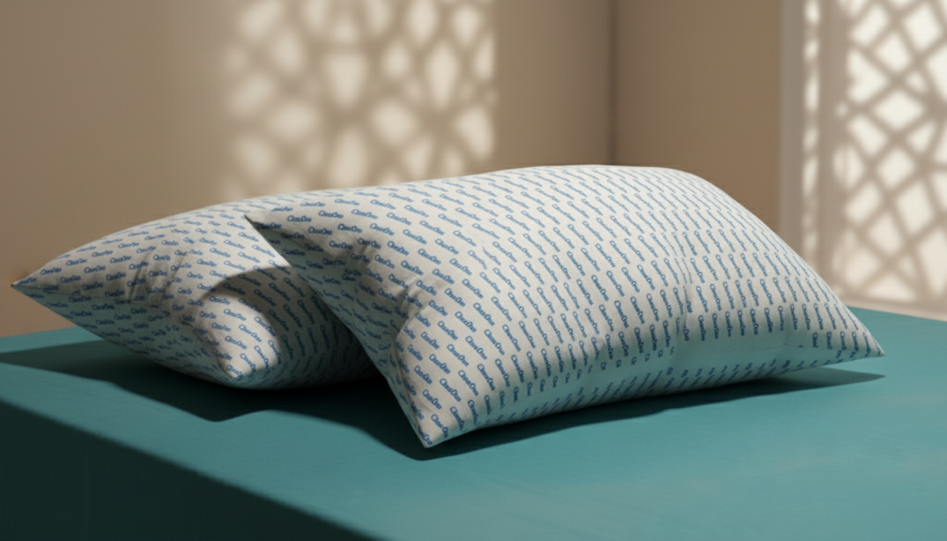 This Pair of JAT MASTAAR Pillows, brought to you by ComfortZone, features a breathable cotton cover and high-resilience Virgin Ball Fiber fill. Vacuum-sealed for hygiene, these 18×28 inch (1000g) pillows offer superior neck support and lasting hypoallergenic comfort.)